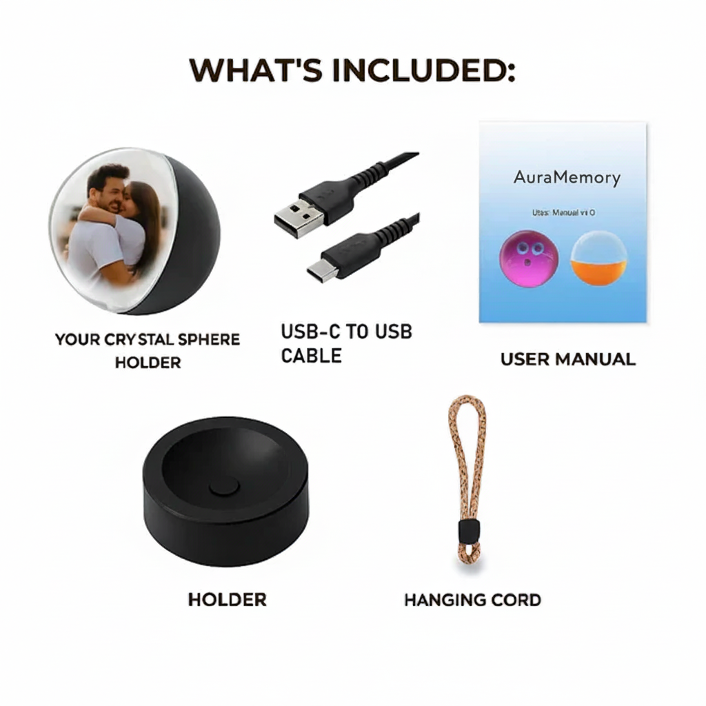 The AuraMemory™ Crystal Sphere captures both video and sound — keeping your most precious memories alive in a stunning keepsake you can hold forever.